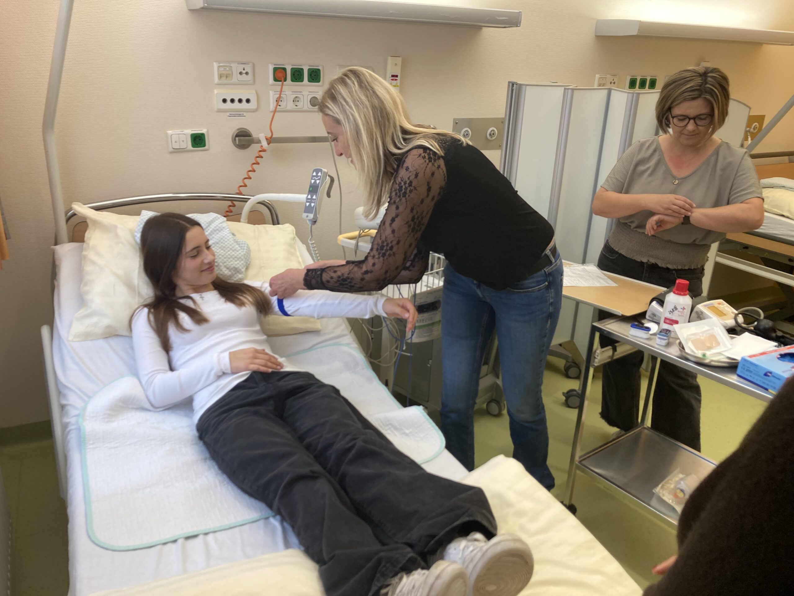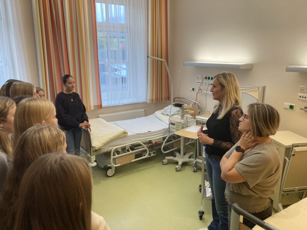 In der Tagesklinik erfuhren sie über die Vielfalt der Aufgaben des Pflegepersonals und konnten erste Erfahrungen sammeln im Blutdruckmessen, der Verwendung des Stethoskops, Pulsmessung oder der fachgerechten Lagerung von Patienten.