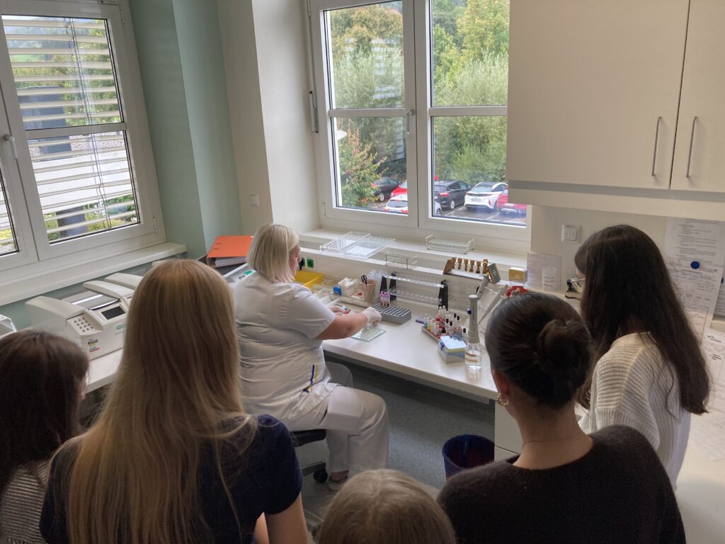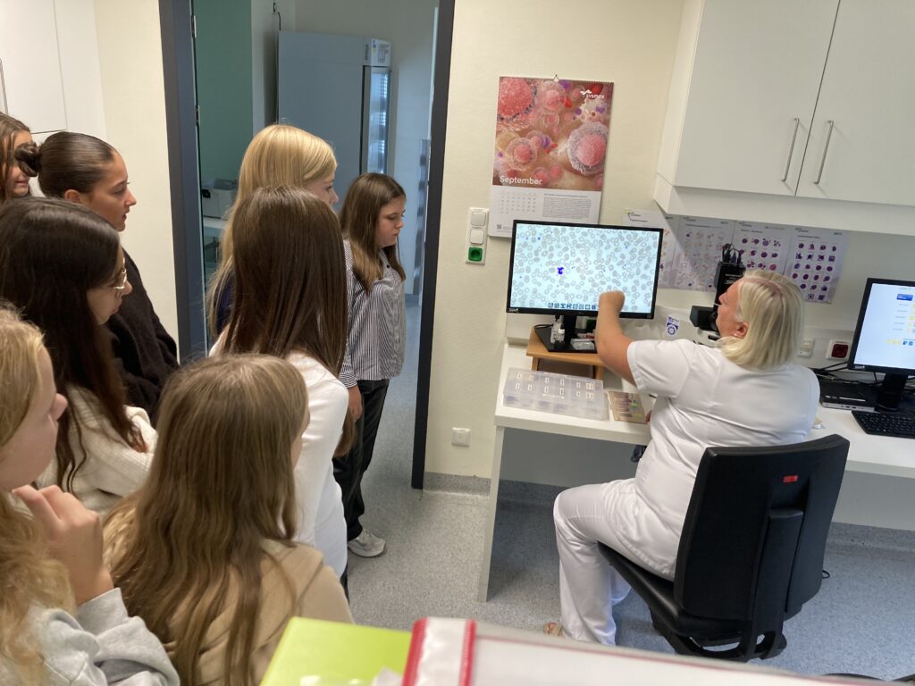 Den Abschluss bildete der Besuch im Labor. Von der Rohrpost, über die für die Blutuntersuchung nötigen Zentrifugen und Mikroskope erstreckte sich die Präsentation der modern eingerichteten Räumlichkeiten, in welchen ein umfangreiches Maß an analytischen Aufgaben gemeistert wurden, um Ärzte bei der Diagnose zu unterstützen. Herzlichen Dank an Frau Christine Schaffhuber.